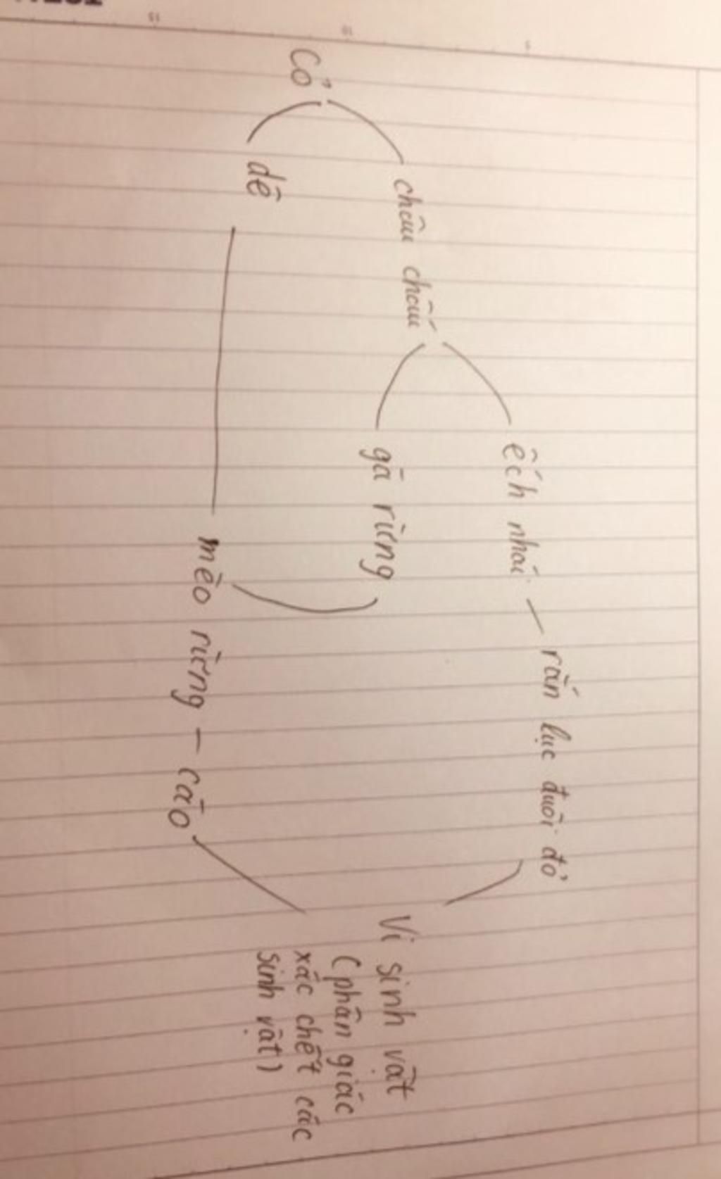 Giả sử có 1quần xã sinh vật gồm các loại sinh vật sau : cỏ ,châu chấu , ếch nhái , dê , gà rừng , cáo , vsv , mèo rừng , rắn lục đuôi đỏ