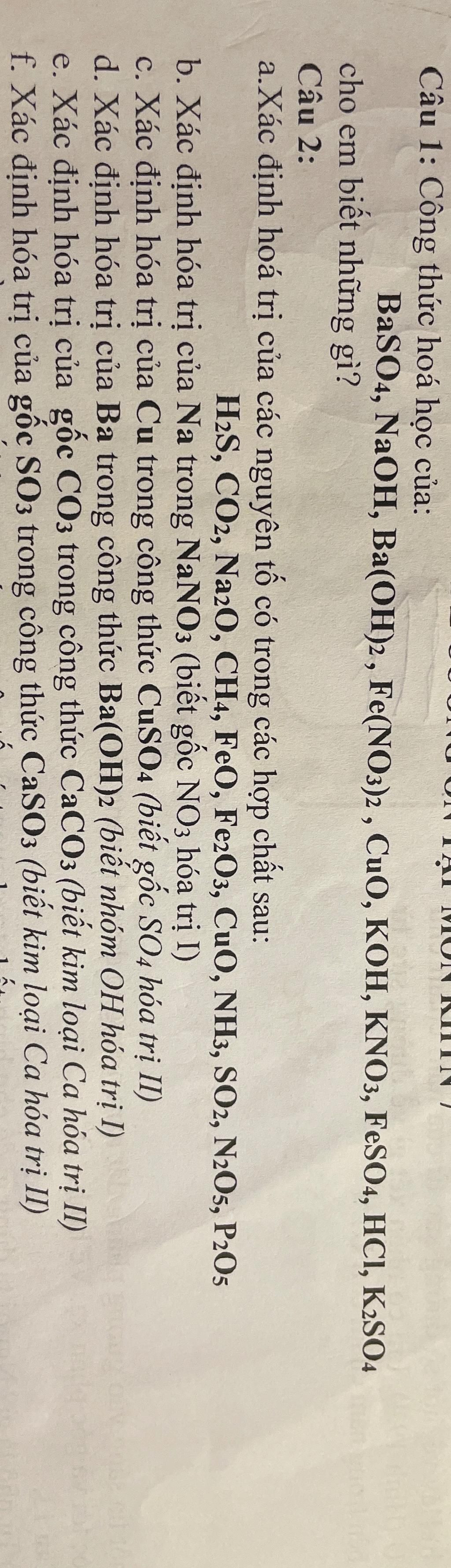 a.Xác định hoá trị của các nguyên tố có trong các hợp chất sau: