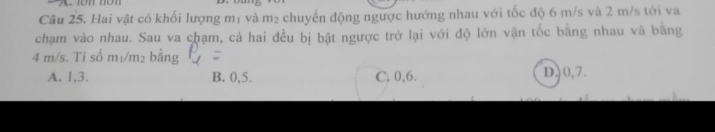 `<=> m_1/m_2 = [v_2' - v_2]/[v_1 - v_1'] = [4 - (-2)]/[6 - (-4)] = 0,6`