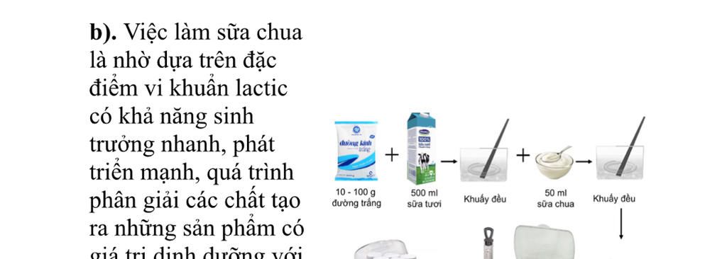 `->` Việc làm sữa chua nhờ vi khuẩn latic hình thành lên. Vi khuẩn latic giúp lên men đồ ăn, giữ đồ ăn giòn và tăng hương vị, tuy nhiên chúng lại rất gây hại cho cơ quan sinh vật đặc biệt là thận.