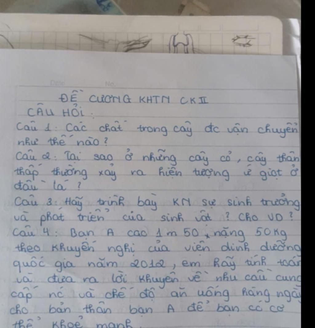 - Nhu cầu cung cấp nước hằng ngày cho bạn A là : 50.50 = 2500 = 2,5 lít nước