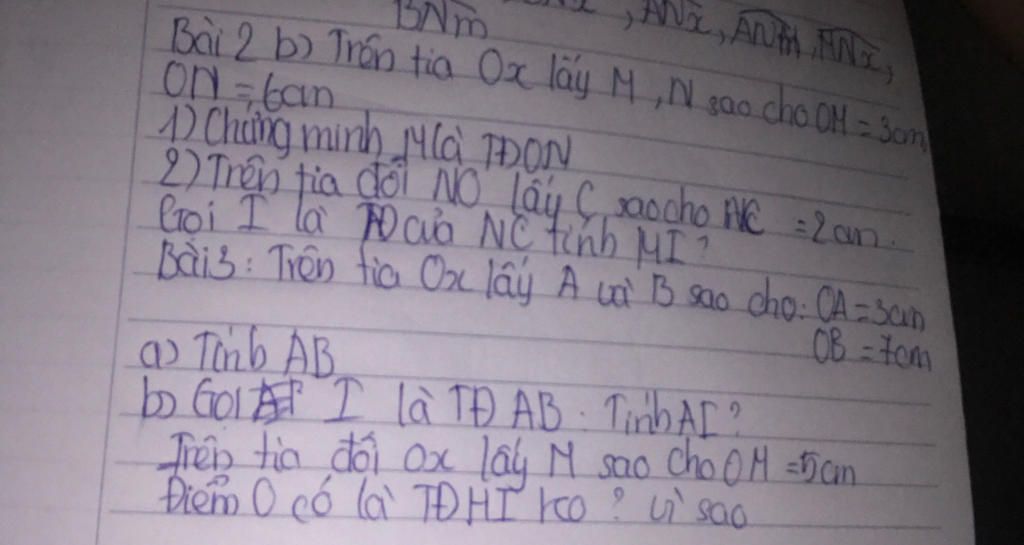 Bài 2 bị trên tia Ox lấy M, N sao cho OM = Sam