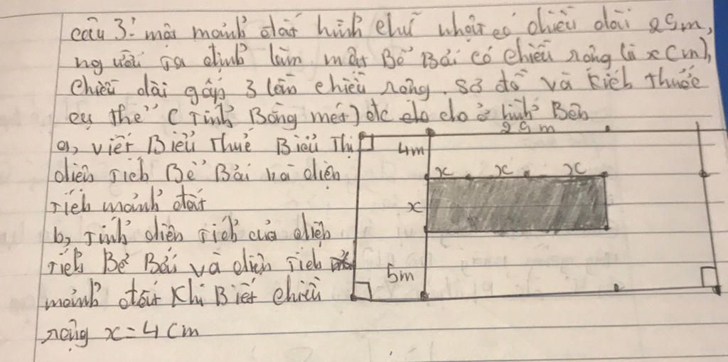 a.Diện tích bể bơi là $x\cdot 3x=3x^2(m^2)$