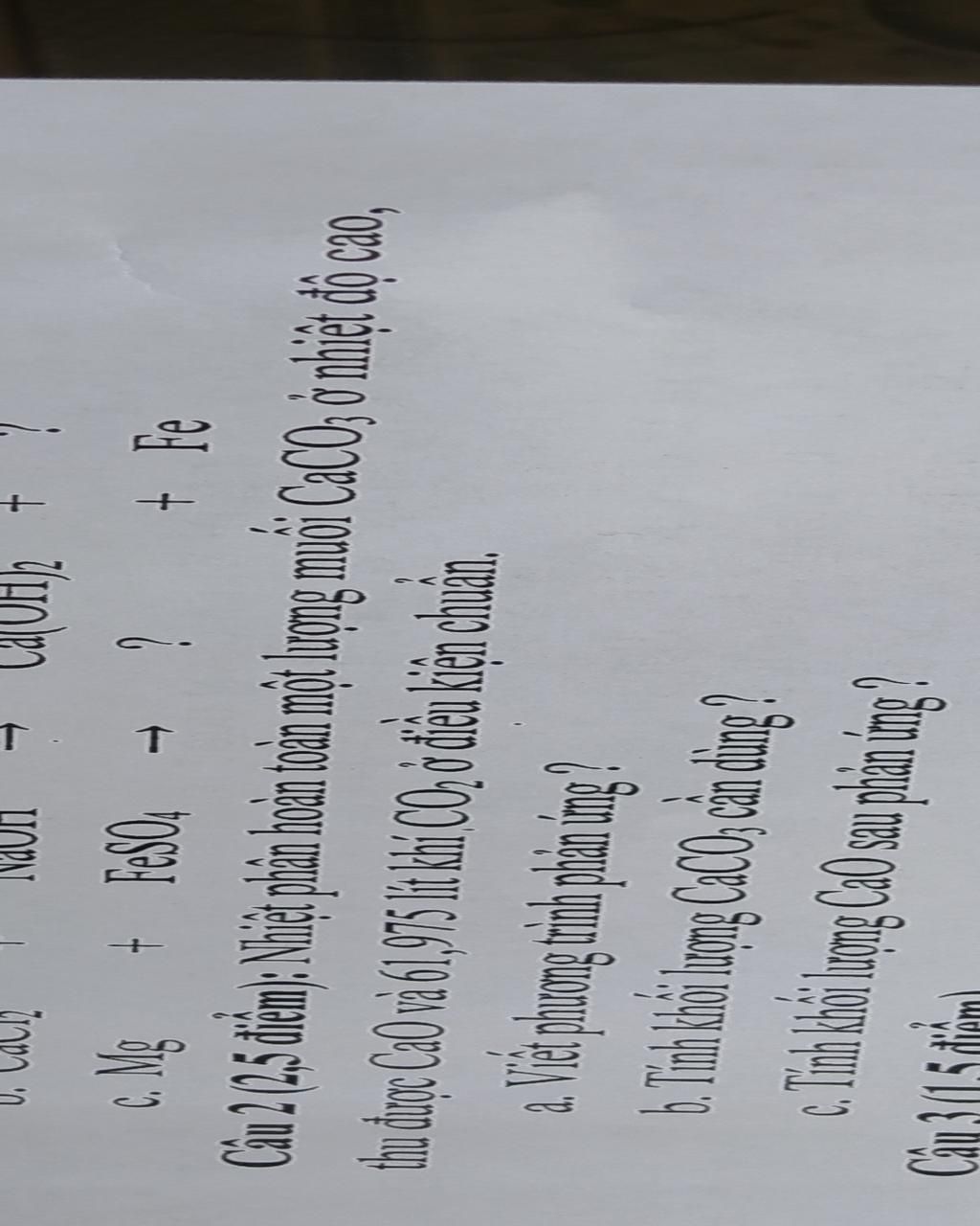 $m_{CaO}$ = ` n ` . ` M ` = ` 2,5 . 56 = 140 ` gam