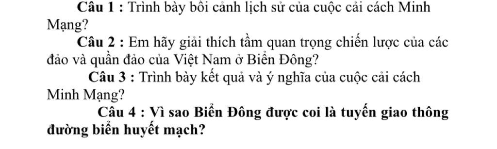 Câu 1: Trình bày bối cảnh lịch sử của cuộc cải cách Minh Mạng