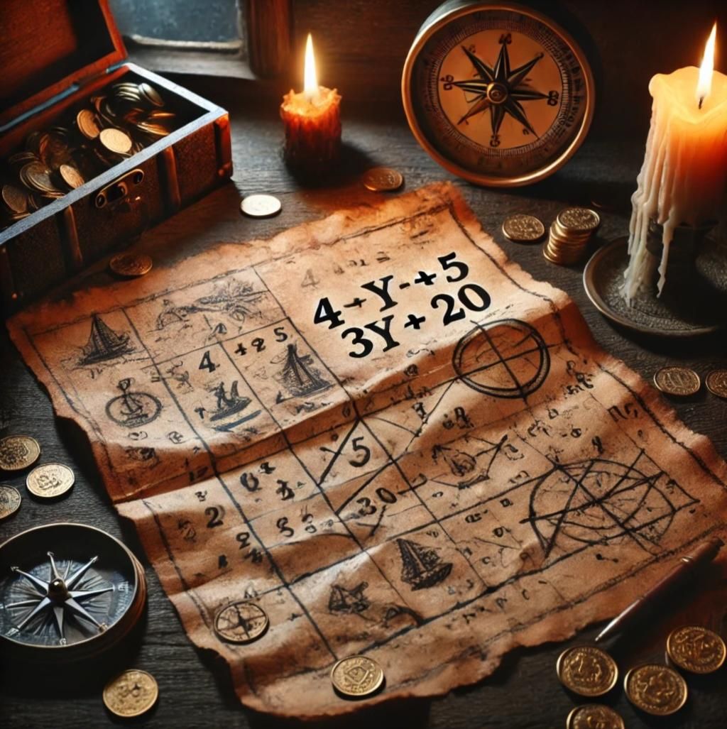 Trên một hòn đảo hoang, Jake tìm thấy một tấm bản đồ kho báu. Nhưng trên đó không có vị trí chính xác, mà chỉ có một phương trình:Bài toán: `4(y^2+5)=3y^2+20`