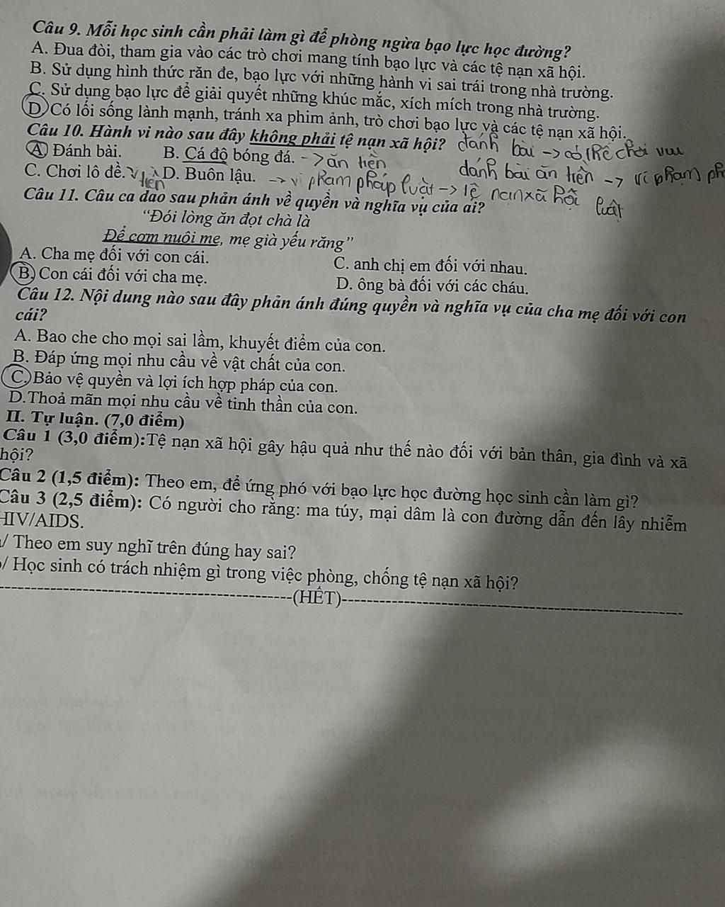 `-` Đánh bài, cá độ bóng đá, chơi lô đề: đều là tệ nạn xã hội, thuộc nhóm cờ bạc, vi phạm đạo đức xã hội và có thể bị xử lý theo pháp luật.
