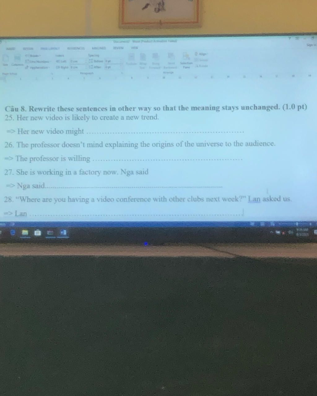`->` S + asked O/wanted to know/wondered + wh-q + S + V(lùi thì)