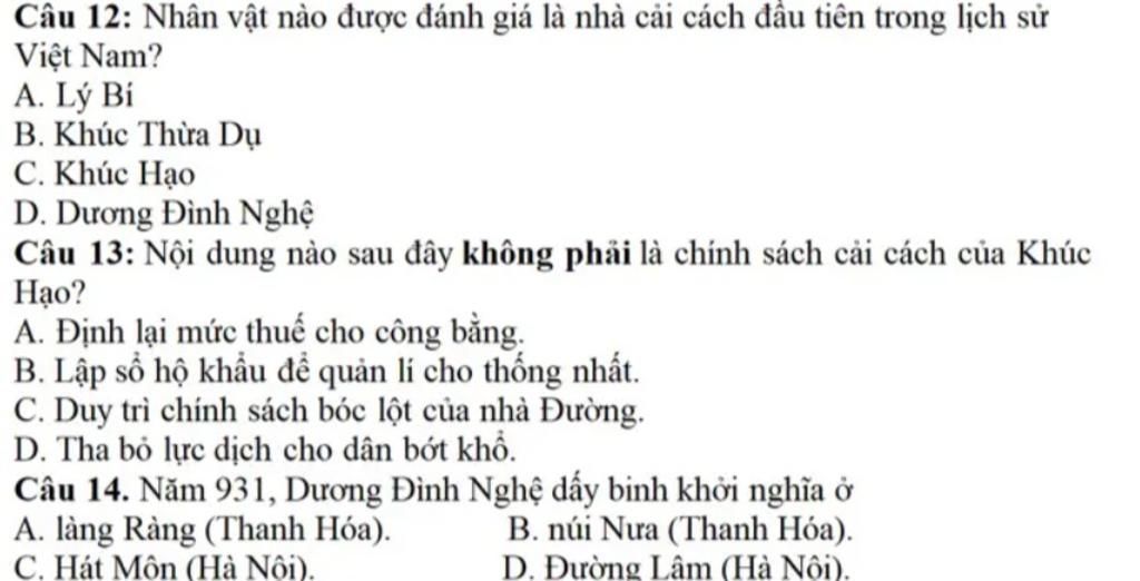 `-` Khúc Hạo (con của Khúc Thừa Dụ) được coi là nhà cải cách đầu tiên của Việt Nam