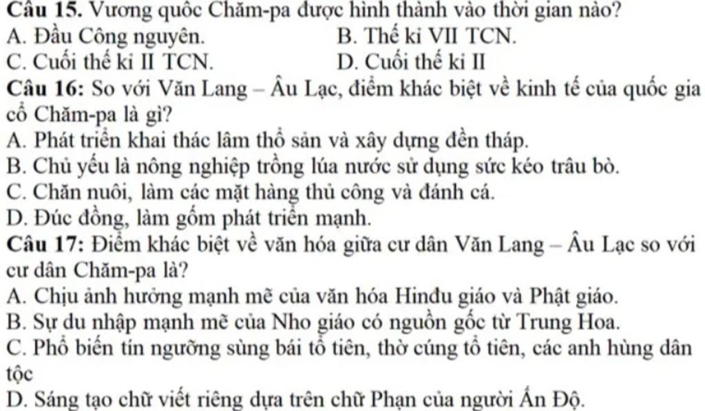 Vì khác với Văn Lang – Âu Lạc, Chăm-pa còn phát triển lâm thổ sản, xây tháp Chăm