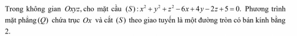 `=>` Khoảng cách từ tâm mặt cầu đến mặt phẳng (Q) bằng 1 là sai