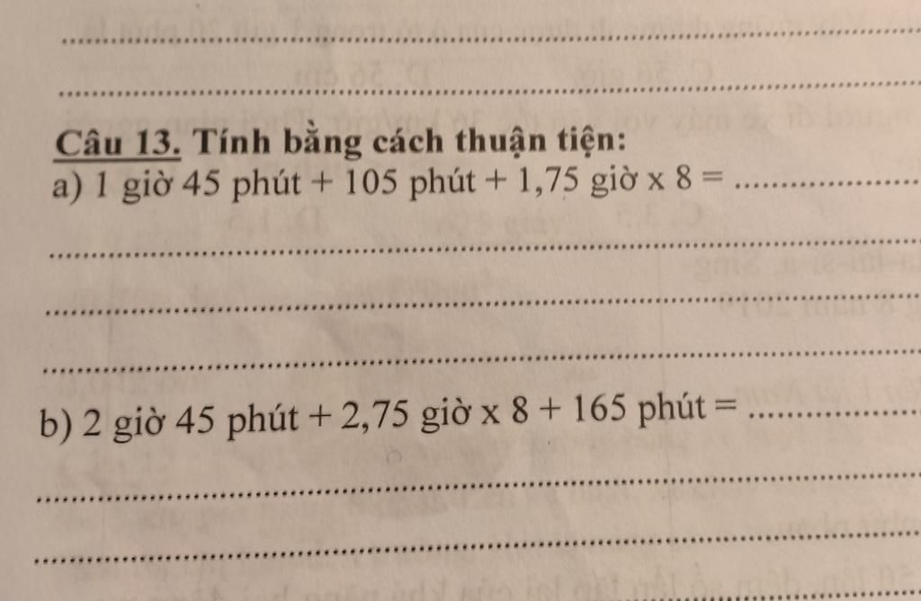 b, ( 2 giờ 45 phút + 165 phút ) + ( 2,75 giờ x 8 )