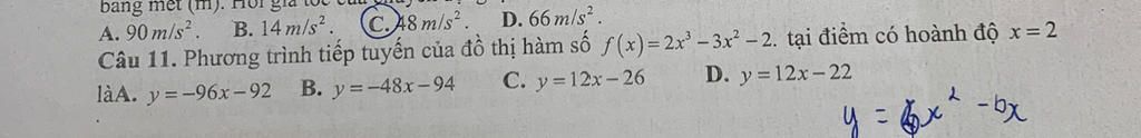 Hệ số góc `k=f'(2)=6*2^2-6*2=12`