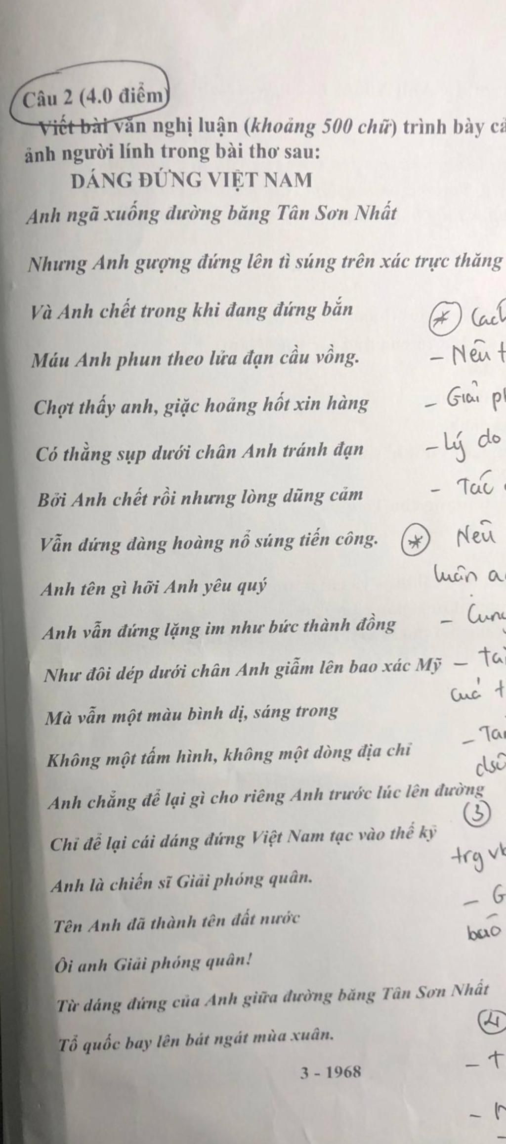 viết bài văn nghị luận (khoảng 500 chữ) trình bày cảm nhận của anh/chị về hình ảnh người lính trong bài thơ sau: (giúp mik với ạ , mik cảm ơn mn trước)