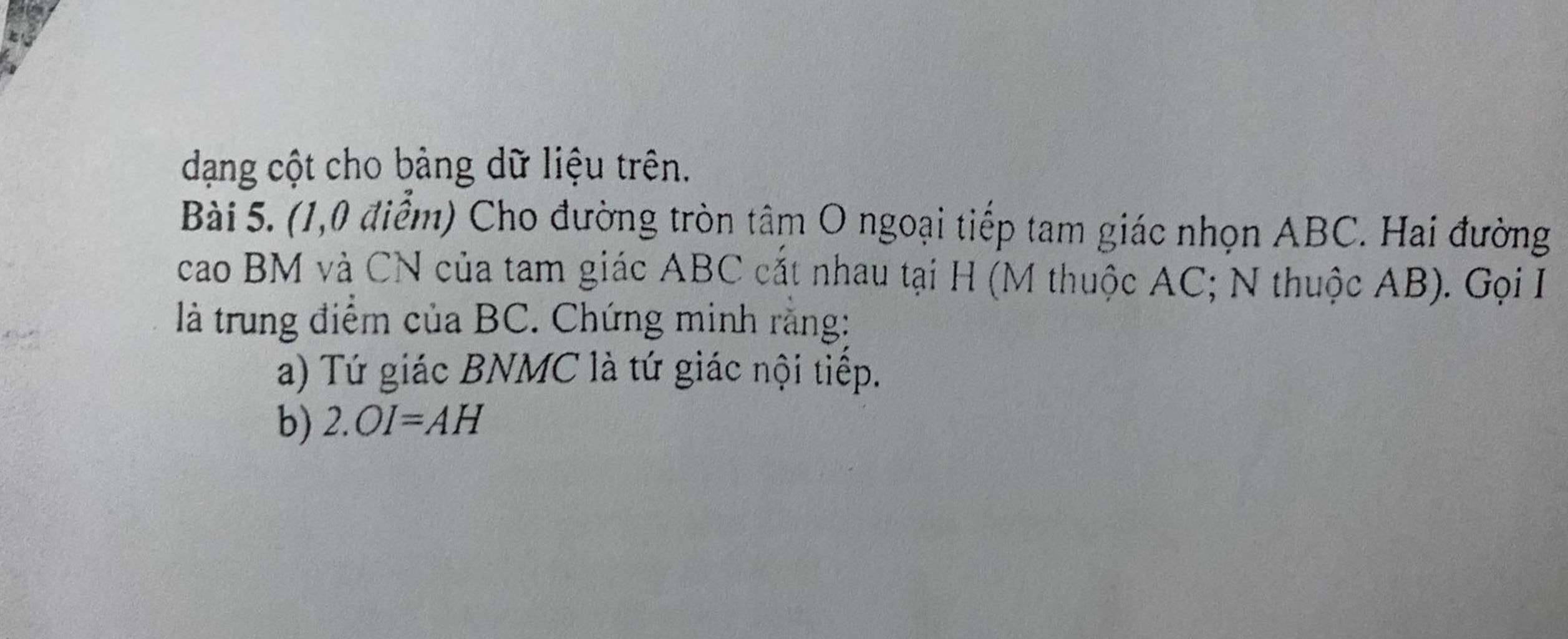 a.Ta có: $\widehat{BMC}=\widehat{BNC}=90^o$