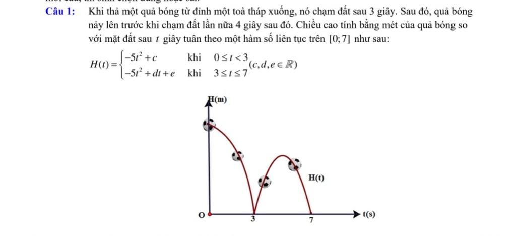 nảy lên trước khi chạm đất lần nữa 4 giây sau đó. Chiều cao tính bằng mét của quả bóng so