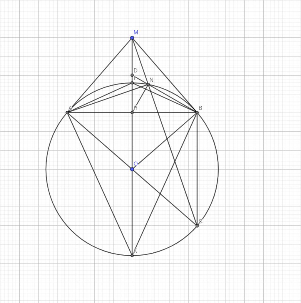 1.Vì $MA, MB$ là tiếp tuyến của $(O)$
