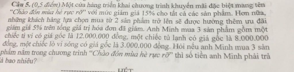 `+` Nếu anh Minh mua 3 sản phẩm trong chương trình " Chào đón mùa hè rực rỡ " thì số tiền anh Minh phải trả là :