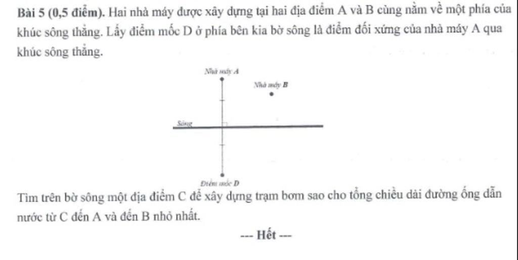 Bài 5 (0,5 điểm). Hai nhà máy được xây dựng tại hai địa điểm A và B cùng nằm về một phía của