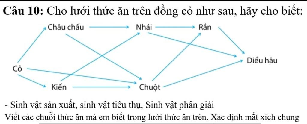 `=>` Mắt xích chung của các chuỗi thức ăn: đầu tiên thường là sinh vật sản xuất và cuối cùng là sinh vật tiêu thụ bậc cao hoặc sinh vật phân giải.