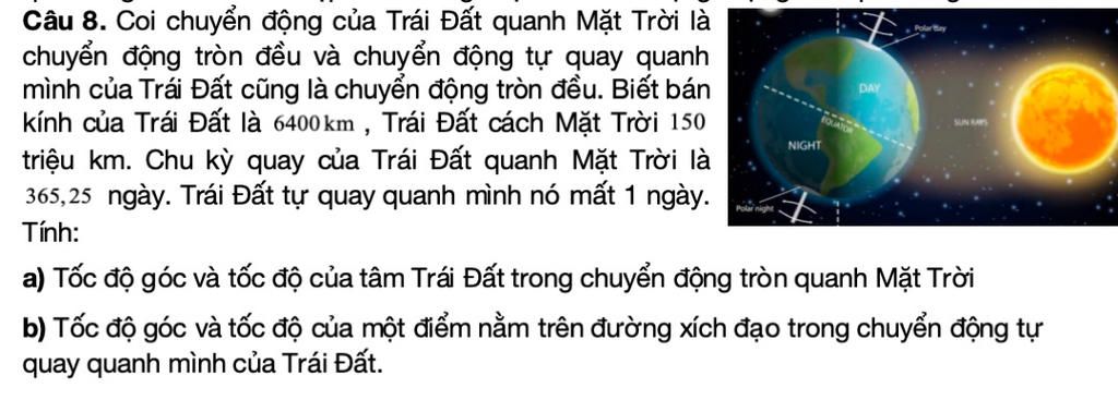 $v_{Đ-MT} = \omega_{Đ-MT} \cdot R_{Đ-MT} = (7,18 \cdot 10^{-4}) \cdot (150 \cdot 10^6) \approx 107700 \text{ km/giờ}$