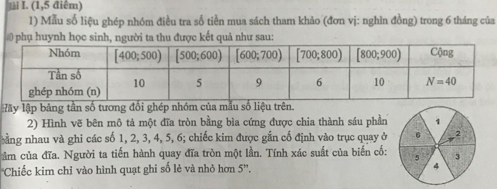 Gọi biến cố A:"Chiếc kim chỉ vào hình quạt ghi số lẻ và nhỏ hơn 5"