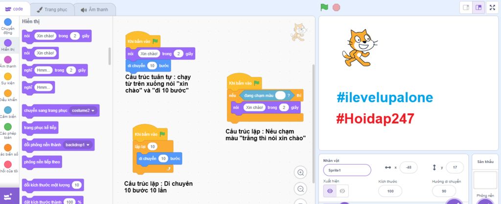 Trình bày cấu trúc điều khiển trong ngôn ngữ lập trình trực quan Scratch?