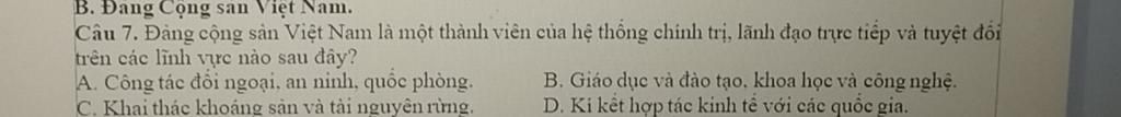 `-` Đồng thời, các lĩnh vực này có sự tham gia của nhiều cơ quan, tổ chức khác nhau, chứ không chỉ có Đảng lãnh đạo duy nhất `.`