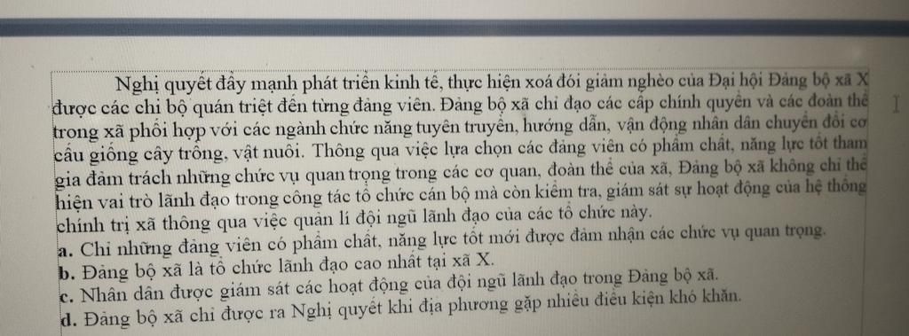 `+`Đảng bộ xã chọn những đảng viên có phẩm chất tốt, năng lực vững vàng để đảm nhận vị trí quan trọng.