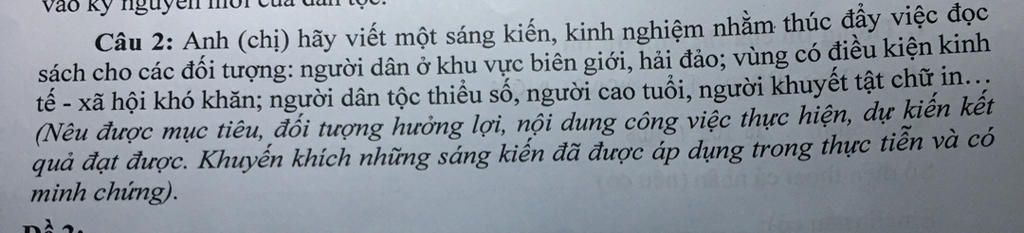 Trong thời đại công nghệ và thông tin phát triển mạnh mẽ, việc tiếp cận tri thức qua sách vở tưởng như đã trở thành điều hiển nhiên. Thế nhưng, thực tế tại nhiều khu vực như hải đảo xa xôi, vùng sâu vùng xa hay các địa phương có điều kiện kinh tế đặc biệt khó khăn lại cho thấy, việc đọc sách vẫn là một điều xa xỉ đối với không ít người dân – đặc biệt là trẻ em. Họ không có thư viện, không có điều kiện mua sách, thậm chí không biết đến khái niệm "đọc sách vì niềm vui". Xuất phát từ thực trạng ấy, tôi xin đề xuất một sáng kiến mang tên “Thư viện lưu động – Ánh sáng tri thức đến mọi miền” với mong muốn đưa sách – và từ đó là tri thức – đến với những nơi thiếu thốn nhất.“Thư viện lưu động” là mô hình sử dụng các phương tiện di chuyển như xe tải nhỏ, xe máy cải tiến, hoặc thuyền (đối với khu vực sông nước, hải đảo) được trang bị tủ sách, bàn đọc mini, ghế gấp, cùng thiết bị đọc sách điện tử. Những thư viện đặc biệt này sẽ đến từng thôn, bản, xã đảo để tổ chức các buổi đọc sách, phát sách miễn phí, giao lưu văn hóa đọc và hướng dẫn kỹ năng đọc cho trẻ em và người dân địa phương.