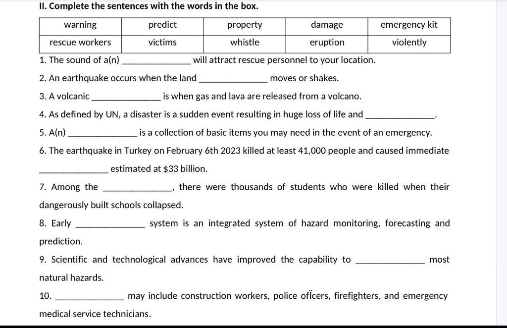→ Damage (thiệt hại) là từ chỉ sự phá hủy gây ra bởi động đất.