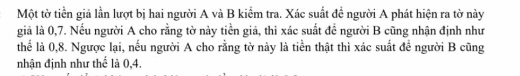 Gọi A là biến cố người A cho rằng tờ tiền là giả