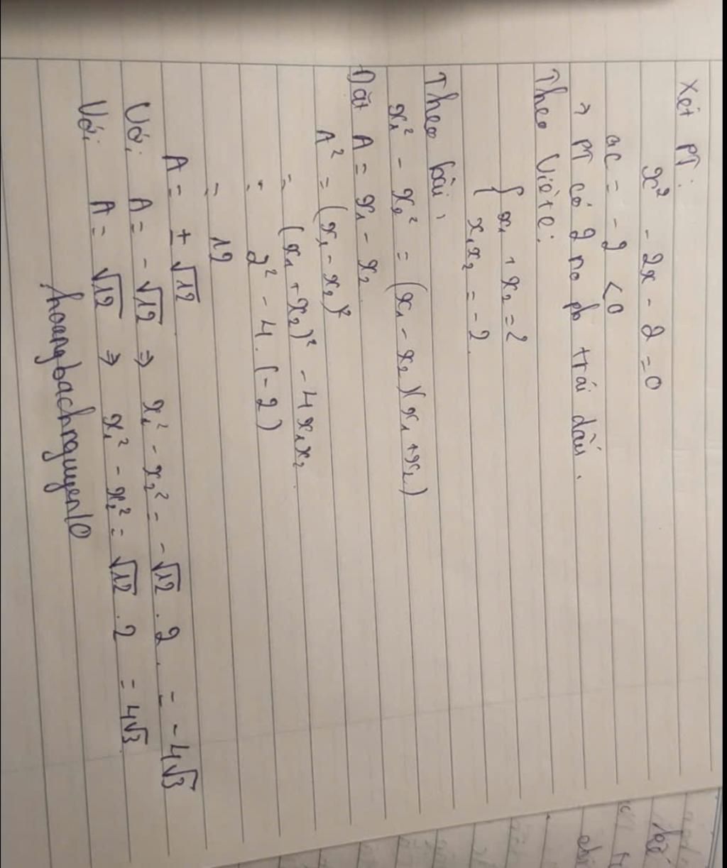 Phương trình có 2 nghiệm phân biệt: `x_1` ; `x_2`