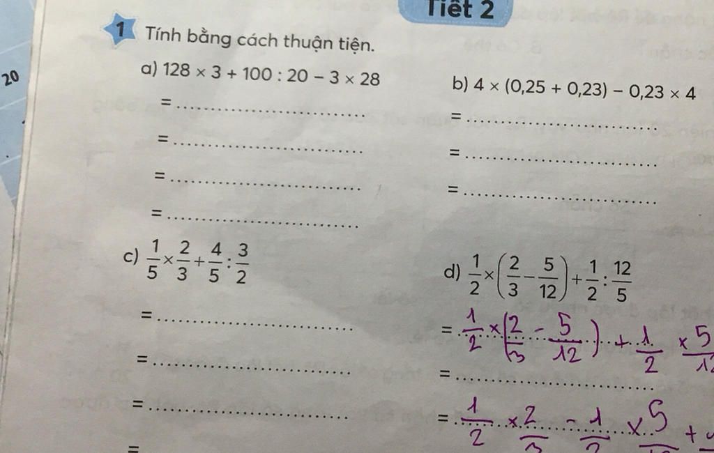 ` a, 128 xx 3 + 100 : 20 - 3 xx 28 `