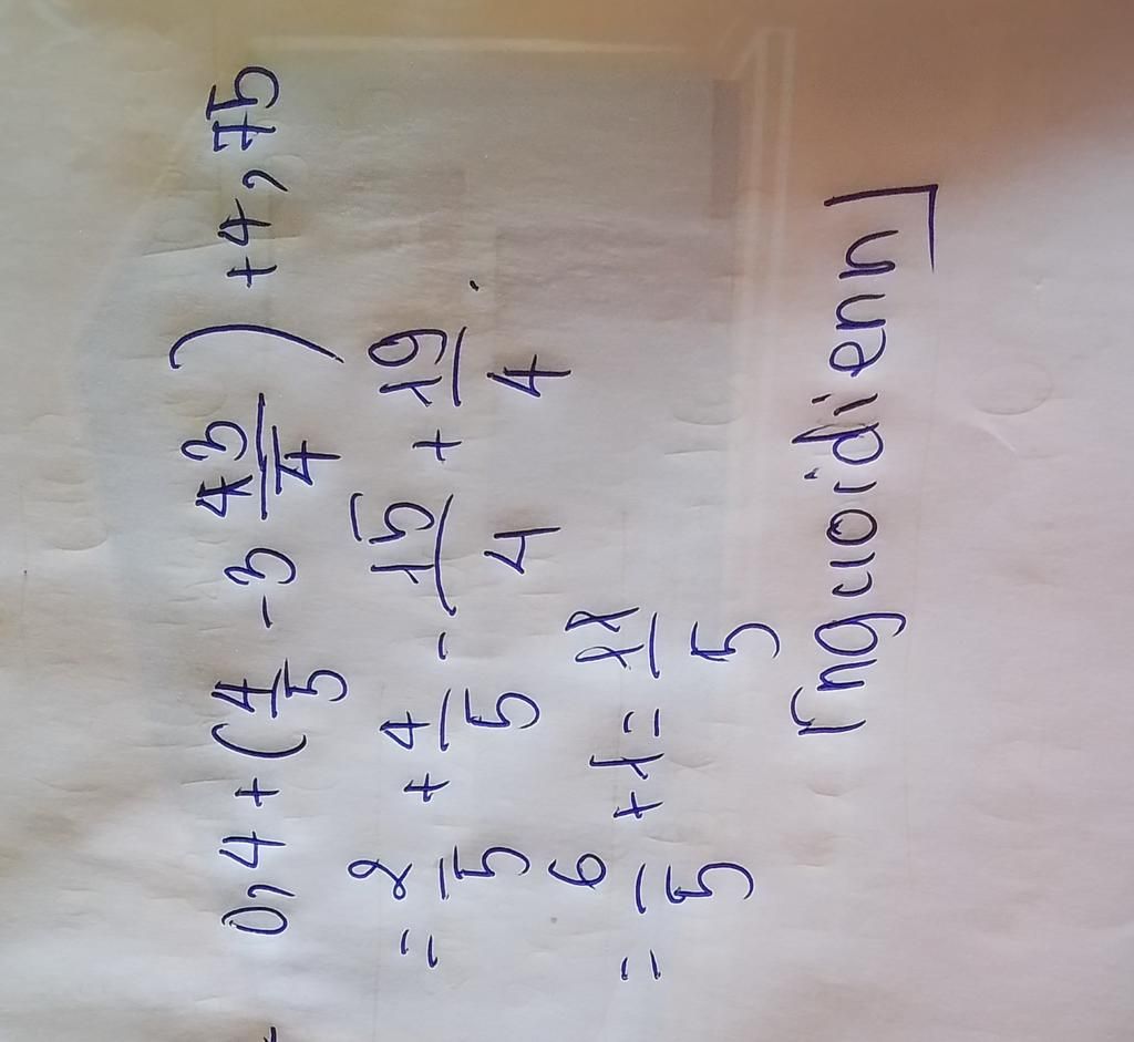 `0 . 4 + (4/5 - 3 3/4) + 4 . 75`