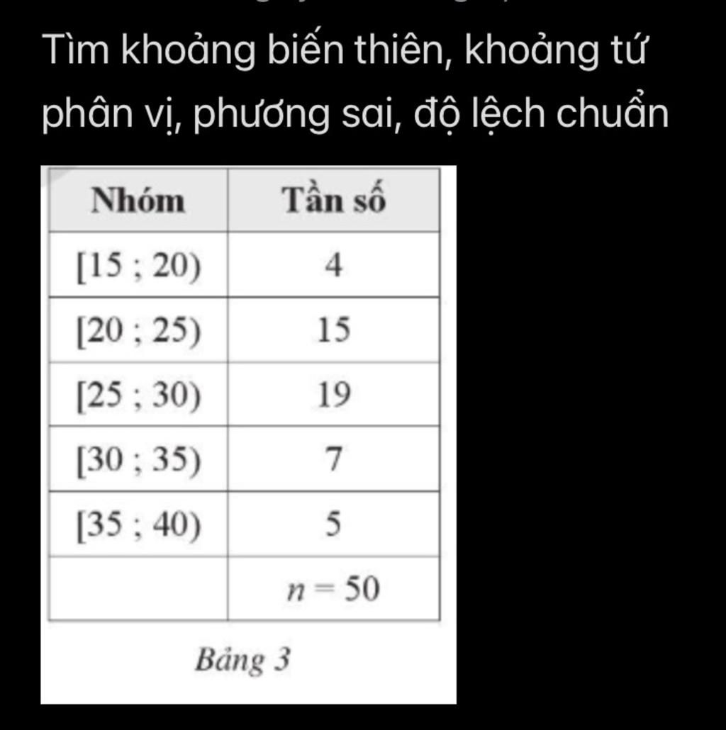 `@` Ta có: `50/4 = 12,5 => Q_1` là nhóm `[20; 25)`