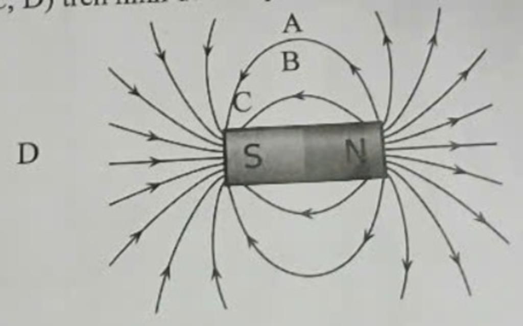 `→` `C` là nơi có từ trường mạnh nhất trong các vị trí được đánh dấu.
