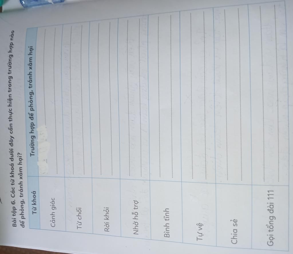 Các từ khoá nào dưới đây cần thực hiện trong trường hợp nào để phòng, tránh xâm hại
