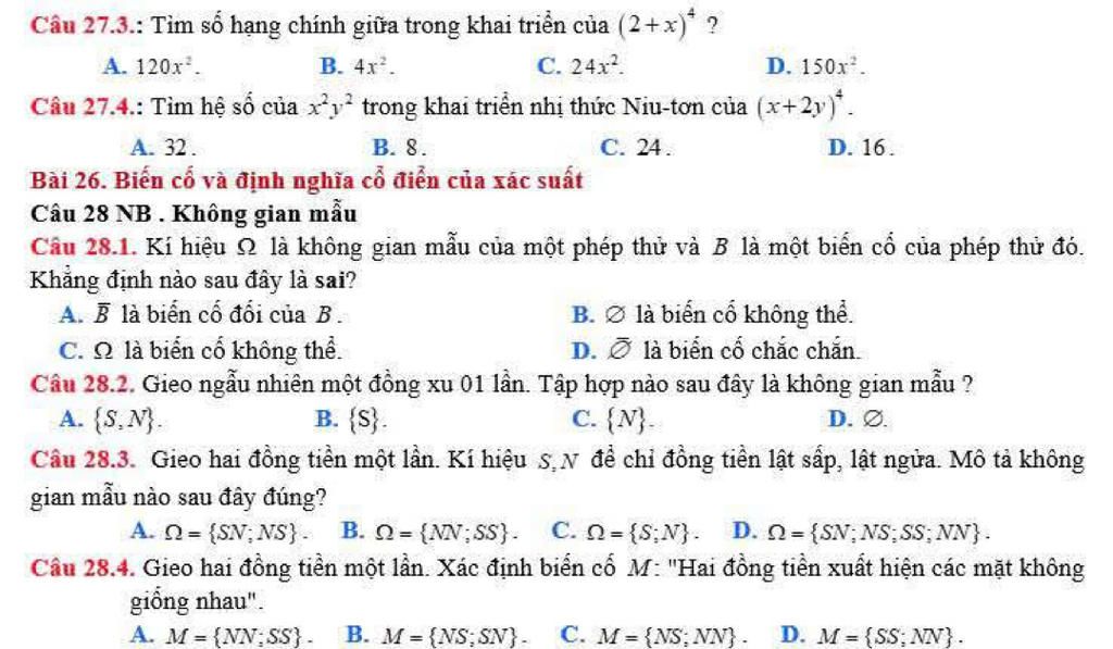 Câu 27.4.: Tìm hệ số của xảy trong khai triển nhị thức Niu-tơn của (x+2y).