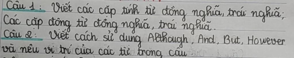 Câu 2: Viết cách sử dụng Although, And, But, However và nêu vị trí của các từ trong câu . Although