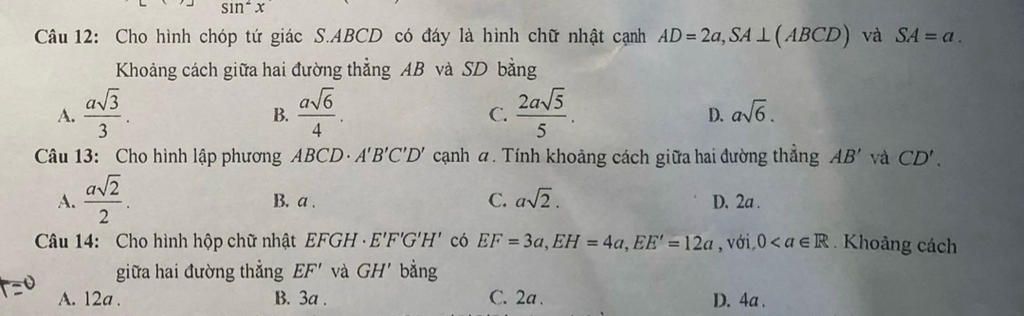 `=> d(AB,SD)=(2a sqrt5)/5`