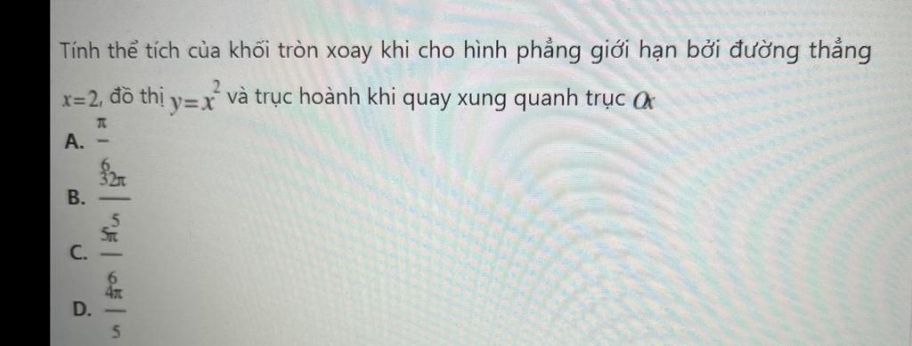 $$\pi\int^2_0(x^2)^2dx=\dfrac{32\pi}5$$