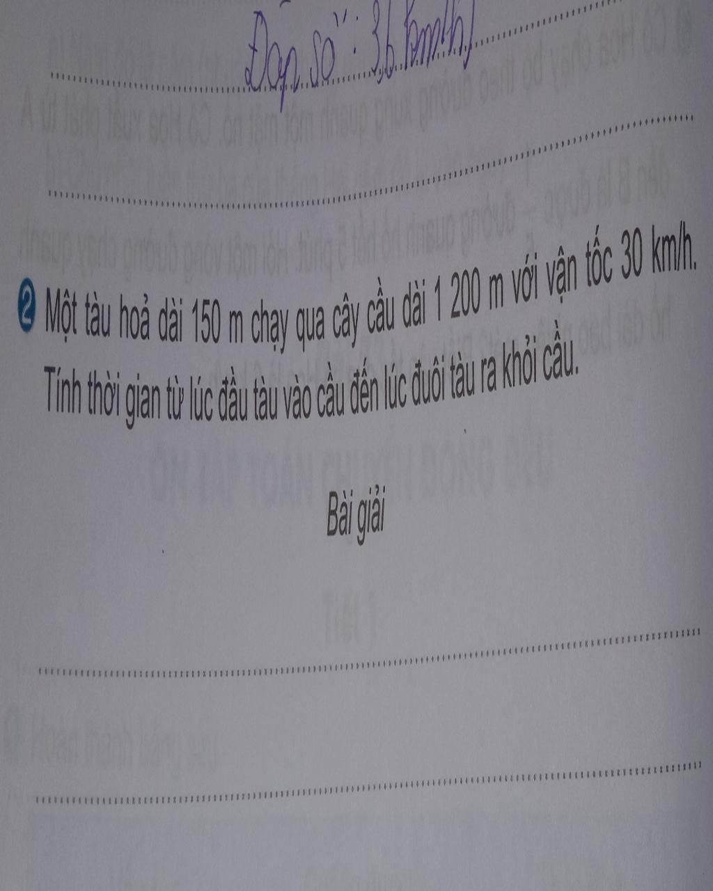 Vậy thời gian cả đầu tàu và đuôi tàu đều qua hết chiều dài cây cầu là: 0,045 giờ