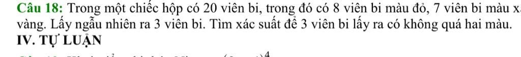 Lấy ngẫu nhiên 3 viên bi trong hộp có 20 viên bi: