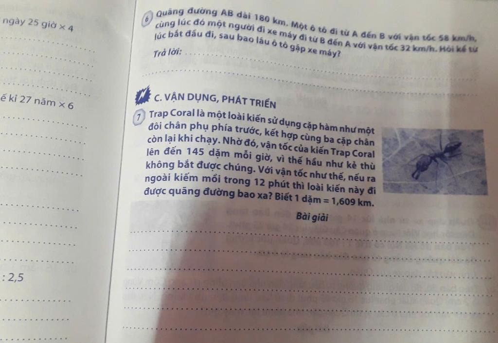 `7)` Đổi `12` phút `= 1/5` giờ