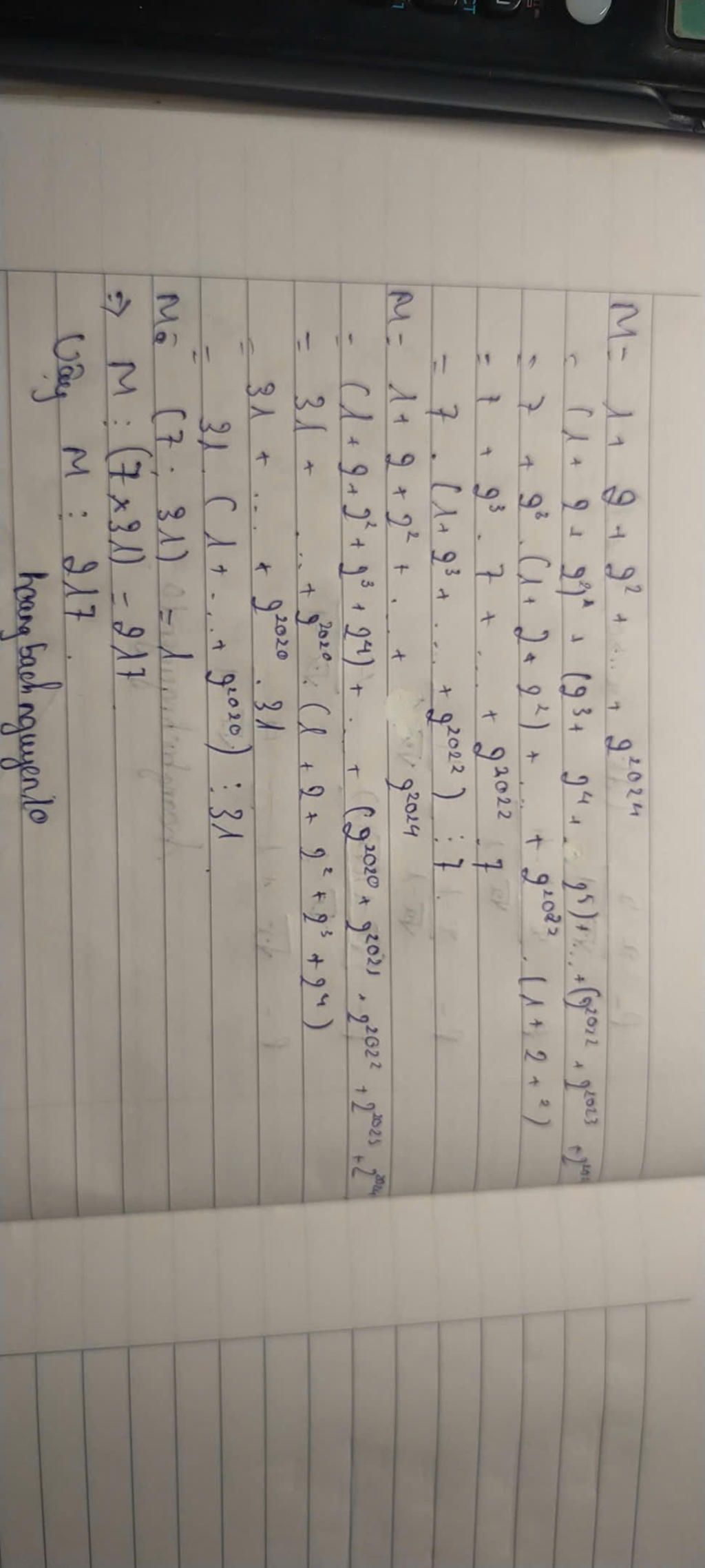 M= 1 + 2 + 2^2 + 2^3 +...+ 2^2024 chia hết cho 217