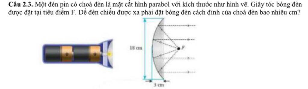 `->` Đèn chiếu được xa khi bóng đèn đặt cách đỉnh của choá đèn `(81)/(12) (cm)`