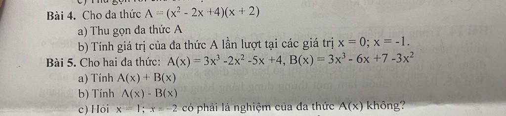 `b) A (x) - B(x) = (3x^3 -2x^2 -5x+4) - ( 3x^3 - 6x +7 - 3x^2)`