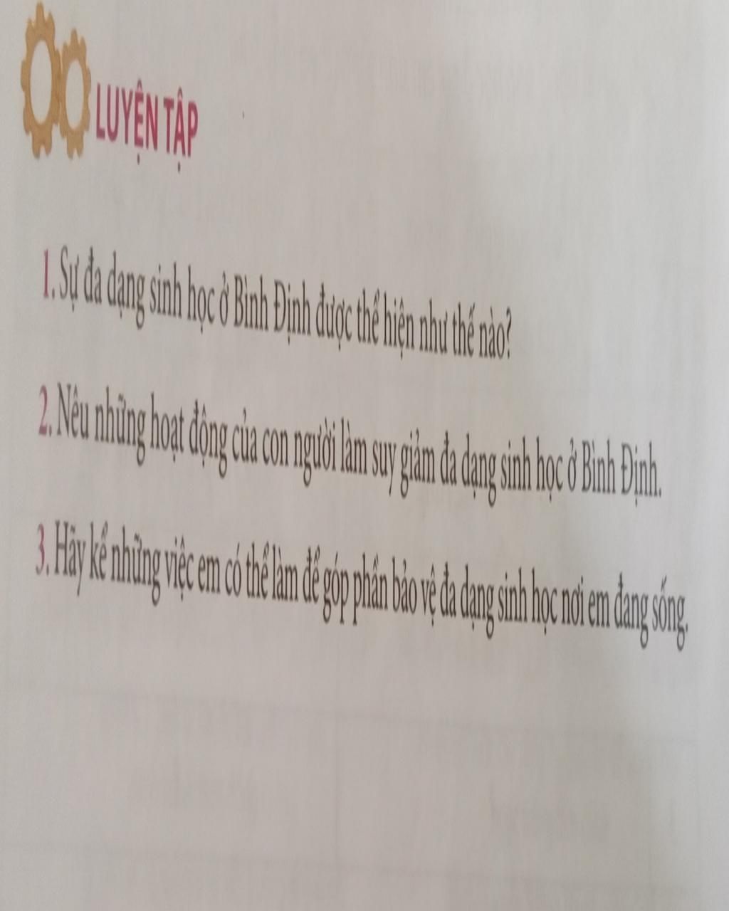 `2`. Những hoạt động của con người làm suy giảm đa dạng sinh học ở Bình Định: