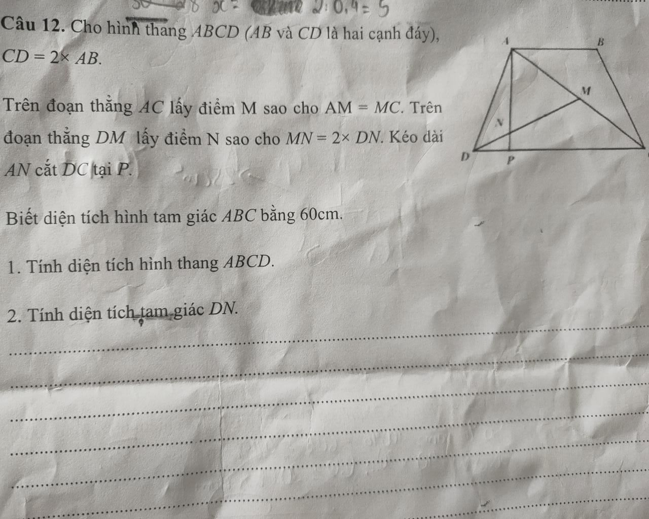Biết diện tích hình tam giác ABC bằng 60cm.